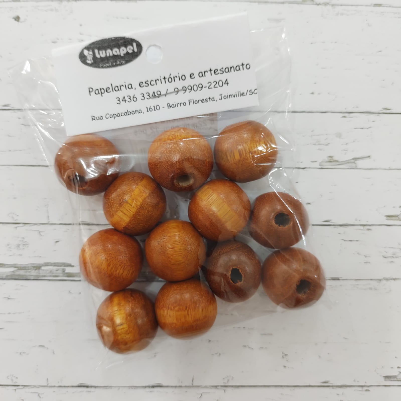 Bola em Madeira 22mm c/ 12 unid.- Marrom Claro7896380981649
