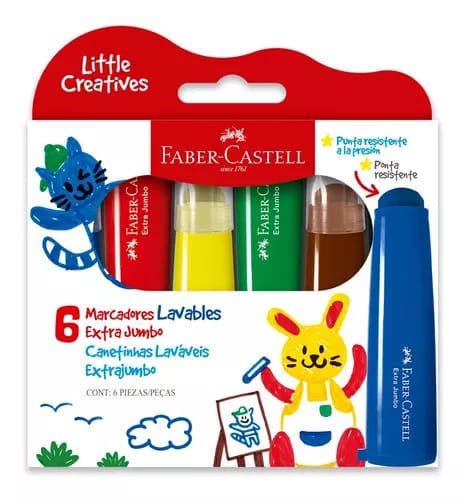 Canetinha Hidrográfica Extra Jumbo Little Criatives 6 cores- Faber-Castell