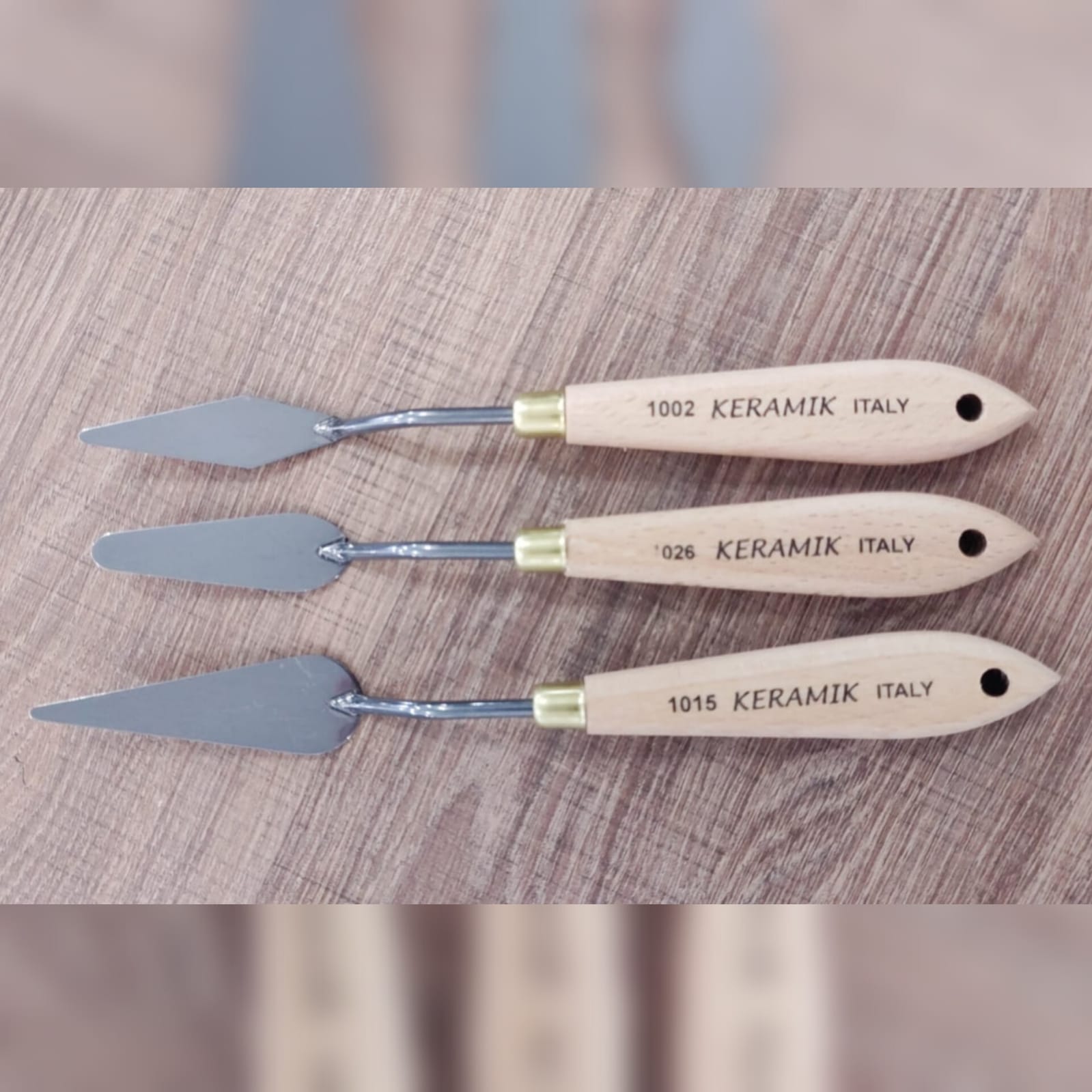 Os formatos das espátulas Keramik são diferenciados para possibilitar a criação de efeitos e traços específicos. Por exemplo, as espátulas de pontas mais finas e angulosas são ideais para cantos, traços finos e raspagens. As mais arredondadas são indicadas para aplicação de tinta e suavizar arestas.
