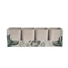 O kit Folhagem vem com 4 porta objetos pretos em uma base estampada com motivos de folhagens que evocam as sensações de frescor e bem-estar da natureza