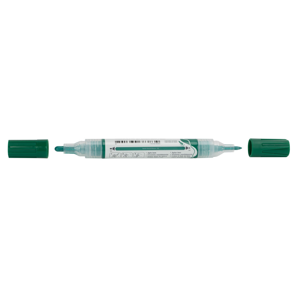 O marcador é permanente em superfícies porosas e pode ser removido em vidro ou superfícies lisas.