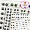 Cartela de adesivos, em material de vinil, a prova d’agua, já recortados e ideal para peças artesanais de EVA, biscuit, papel, tecido e feltro. São olhinhos com uma camada de resina (alto relevo que imita vidro). Cores sortidas.