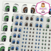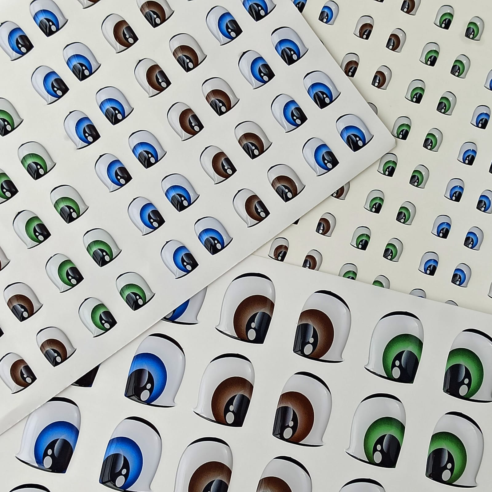 Cartela de adesivos, em material de vinil, a prova d’agua, já recortados e ideal para peças artesanais de EVA, biscuit, papel, tecido e feltro. São olhinhos com uma camada de resina (alto relevo que imita vidro). Cores sortidas.