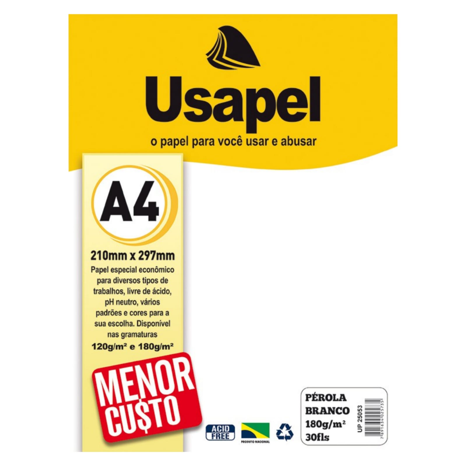 Papel Pérola Branco A4 180g/m² 30 fls Usapel